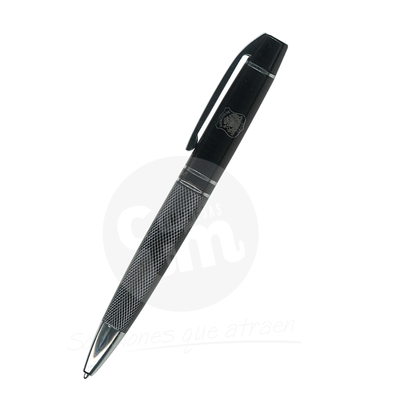 Boligrafo negro con grip texturizado y logo del ejercito grabado en el