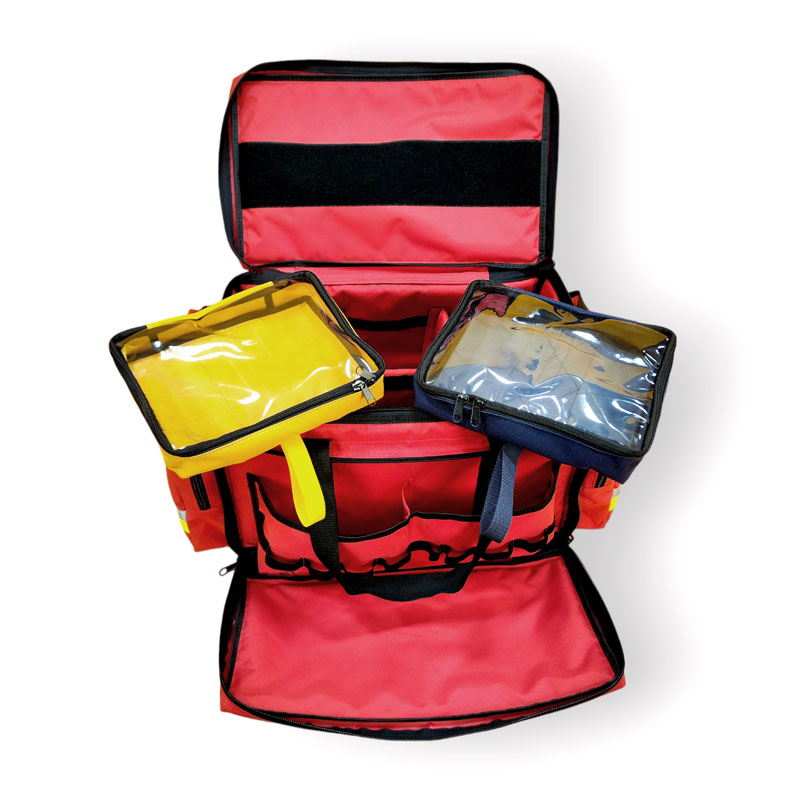 Bolso de rescate Heavy Duty, de nuestra línea es uno de los bolsos más grandes, muy espacioso y por estar reforzado ya es capaz de contener equipo médico como desfibriladores o botellas de oxígeno, Amplios espacios bien distribuidos con sistema Slider para administrar los objetos a su interior de mejor manera en cuerpo central además de bolsillos externos muy grandes Fabricada en Cordura 600D Impermeable y resistente, otorga una mayor durabilidad y además confiabilidad en el caso de duras situaciones y requerimientos. Presenta además características de anti desgarro Diseño eficiente con bolsillos de fácil acceso y interior con separaciones Slide, permitiendo dar espacios adecuados a los implementos que sean necesarios, además de protegidos Fortaleza en su estructura y costuras, para permitir mejor protección contra golpes u otros acontecimientos, además de contar con paredes acolchadas, bandas reforzadoras, y topes de goma antideslizante para piso Visibilidad total, al tener estuches transparentes y todo lo que se incorpore al bolso queda a la rápida observación del operador, además de bandas reflectantes en todos sus lados y en correa de hombro, para mayor seguridad en situaciones críticas Características