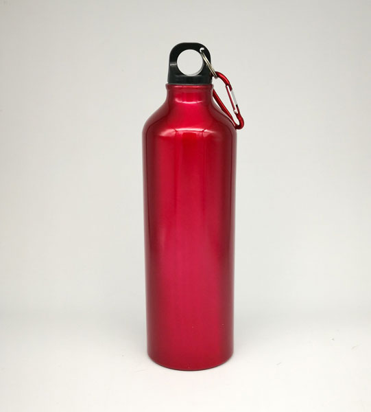 Botella deportiva o caramayola de aluminio. Para líquidos fríos (no térmico). Incluye mosquetón en la tapa color negro.