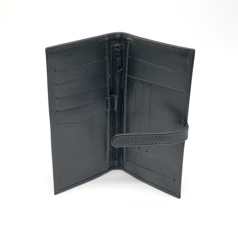 Posee pasador Broche, 8 tarjeteros, 2 billeteros, 1 porta chequera, 1 porta lápiz y un cierre interior tipo monedero.