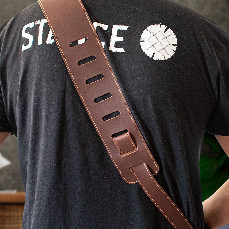 Correa Tipo Strap Para Guitarra O Bajo Acustico. Fabricado En Cuero Cuenta Con Sistema De Ajuste De Altura. Medidas Desde 1.19cms Hasta 1.45 Cms.