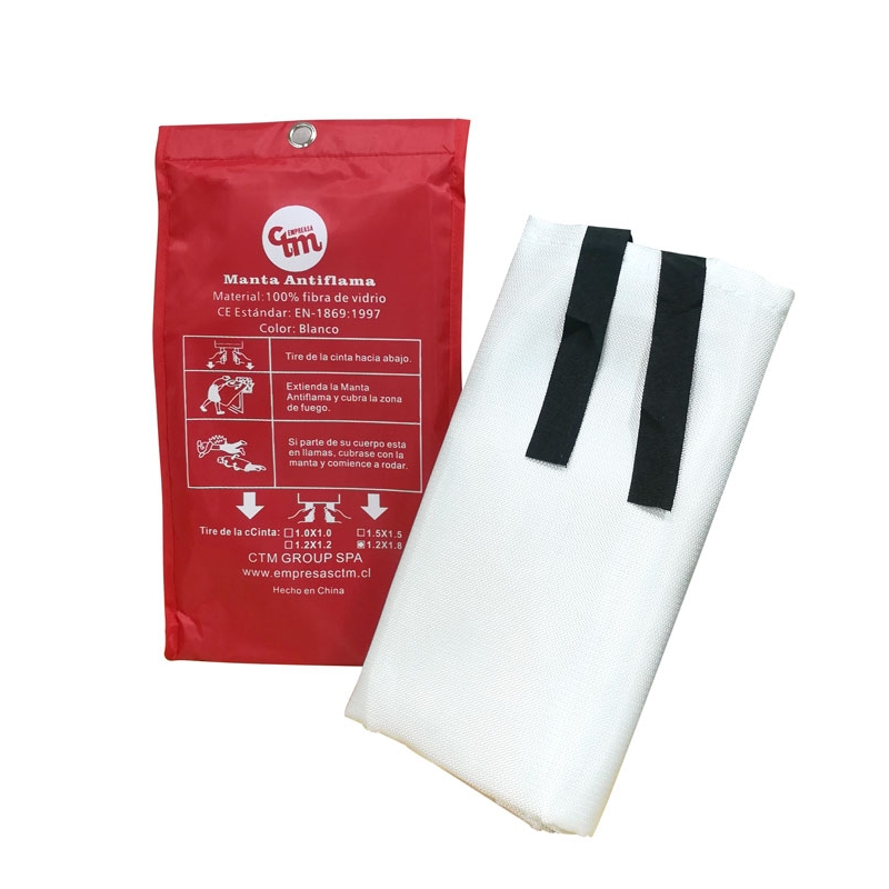 Frazada aislante ignífuga fabricada en 100% fibra de vidrio. Sus dimensiones son 1,2 x1,8 metros, 7.0.43 mm. Disponible en color blanco. Certificación EN1968/1997. Además viene en empaque de material resistente. Su peso promedio es de 430g / m2. No tiene fecha de caducidad y de igual manera amigable con el medio ambiente. Excelente aislante del calor soportando hasta 550º. También es fácil de guardar y usar. Se recomienda no utilizarla para chispas de soldaduras.