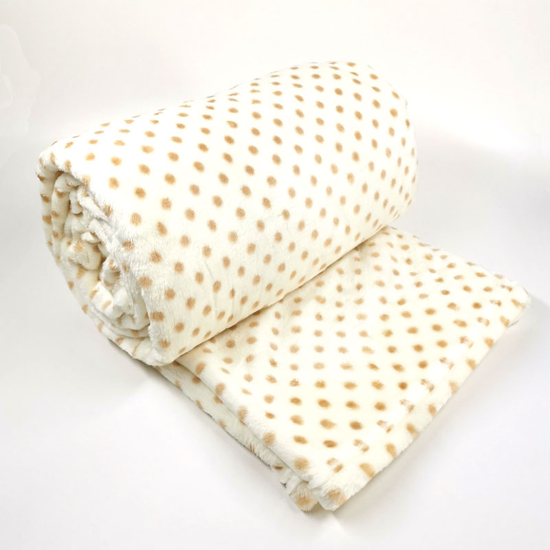Frazada ultra suave en microfibra cachemira, con diseño de puntitos beige con medidas de 200x180cms