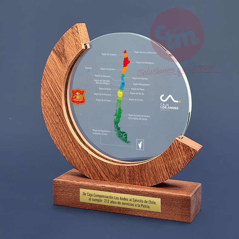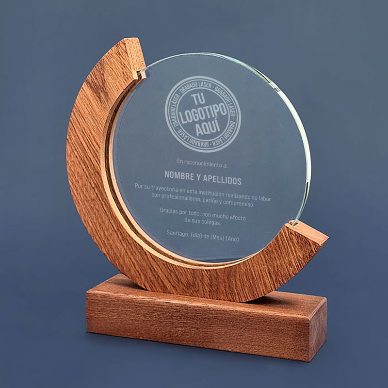 Galvano media luna de madera con cristal circular.