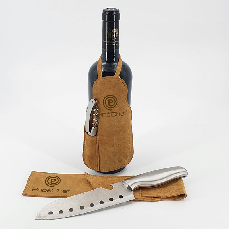 • Mini Pechera de cuero Reno para botella personalizada de confección propia.