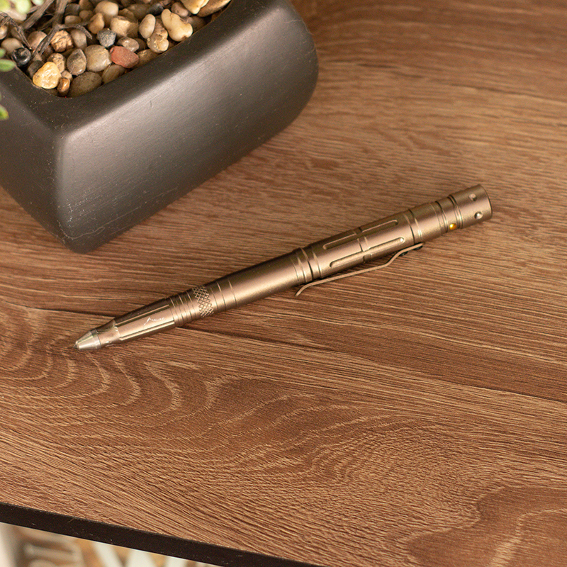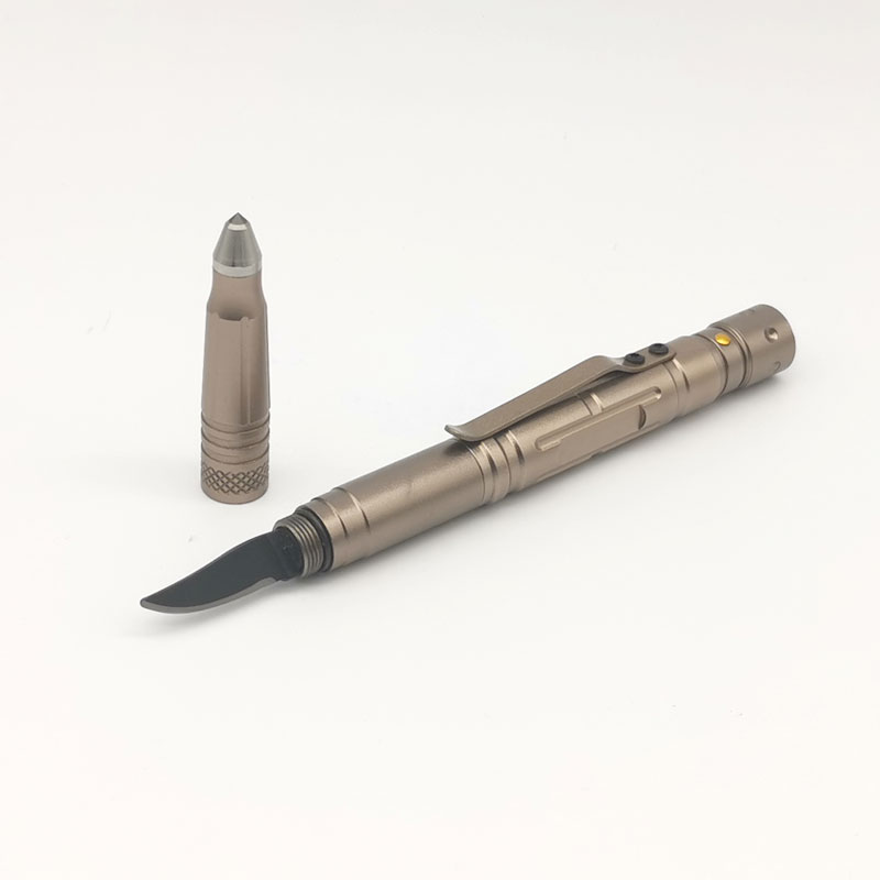 El bolígrafo táctico puede actuar como un rompe cristales, un cuchillo, una linterna y, por supuesto …