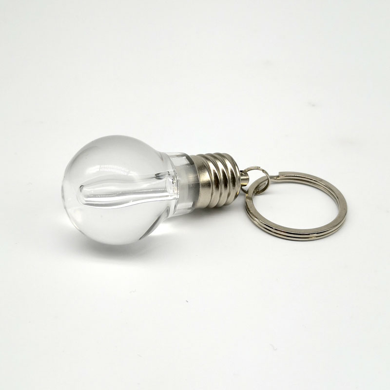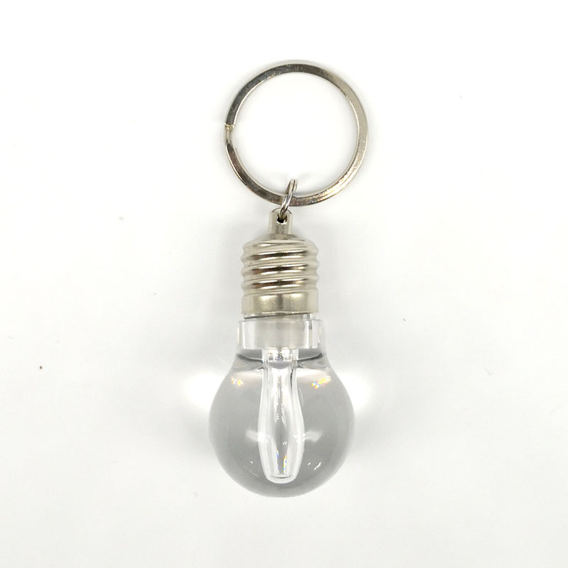 Llavero con forma de ampolleta con luz que cambia de color al pulsar botón superior.