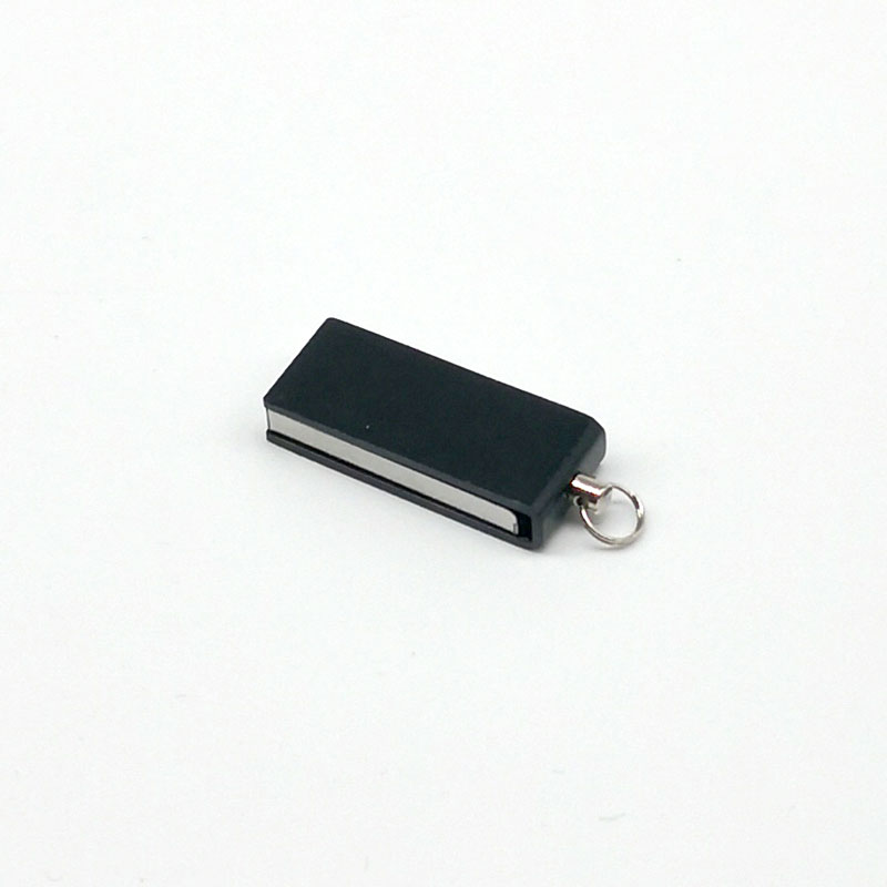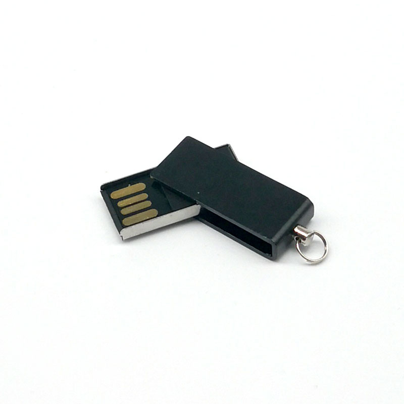 Mini pendrive giratorio color negro. Capacidad: 8GB. Incluye caja de aluminio e interior acolchado para presentación.