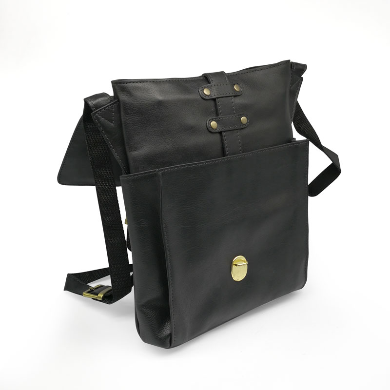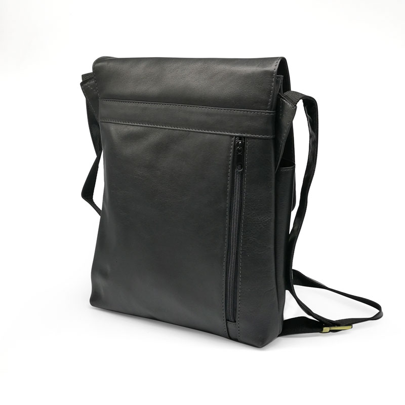 Múltiples divisiones, hebilla y bolsillo posterior con cierre.