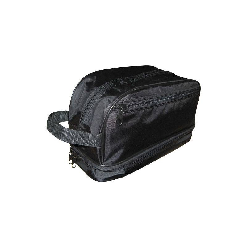 El práctico Neceser porta Zapatillas tipo militar color negro, es confeccionado en tela oxford y permite almacenar diferentes objetos incluso zapatillas en ocasión de viajes o como articulo de uso diario.