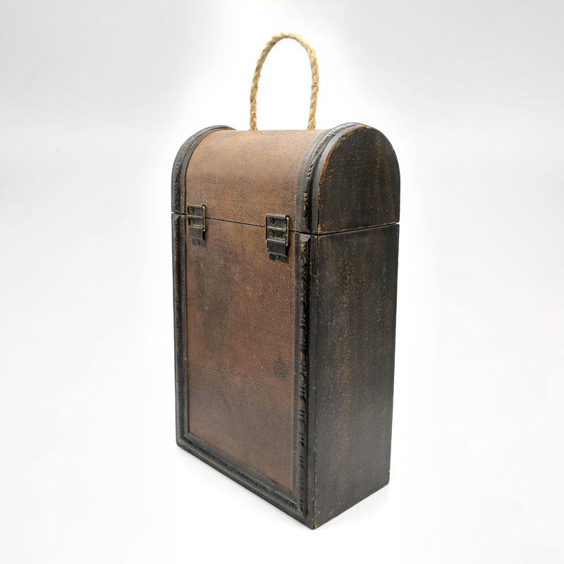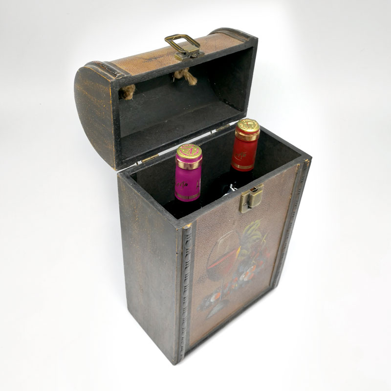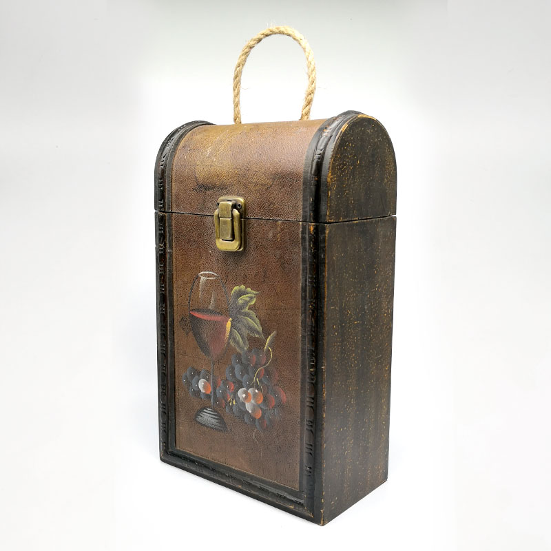 Caja de madera rústica pintada a mano para 2 botellas de vino.