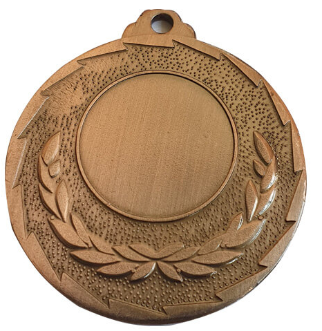 MEDALLA IMPORTADA COLOR COBRE DE 50 MM DE DIÁMETRO, ESPESOR 3 MM, LOGO APLICADO CON RESINA DE 25 MM Y GRABADO LÁSER PERSONALIZADO EN EL REVERSO. CONSIDERA CINTA TRICOLOR (AZUL, BLANCO Y ROJO). MATERIAL: ALEACIÓN ZINC CON BAÑO COLOR COBRE