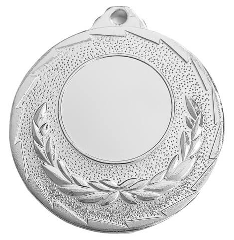 MEDALLA IMPORTADA COLOR PLATA DE 50 MM DE DIÁMETRO, ESPESOR 3 MM, LOGO APLICADO CON RESINA DE 25 MM Y GRABADO LÁSER PERSONALIZADO EN EL REVERSO. CONSIDERA CINTA TRICOLOR (AZUL, BLANCO Y ROJO). MATERIAL: ALEACIÓN ZINC CON BAÑO DE PLATA