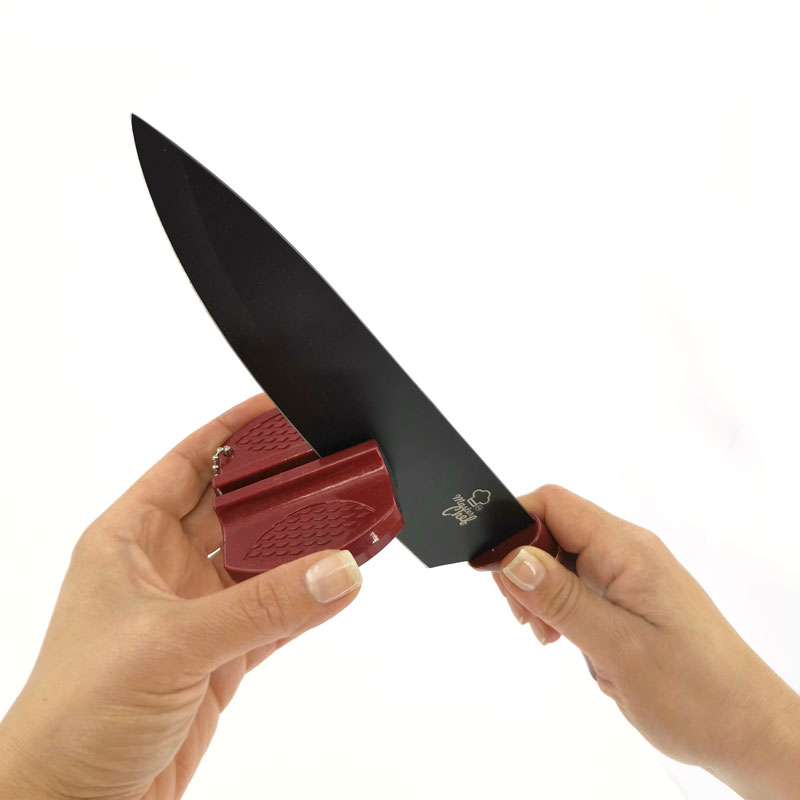 Set de cuchillos para cocina Master Chef con filo de acero inoxidable recubierto  en cerámica color negra y mangos rojos