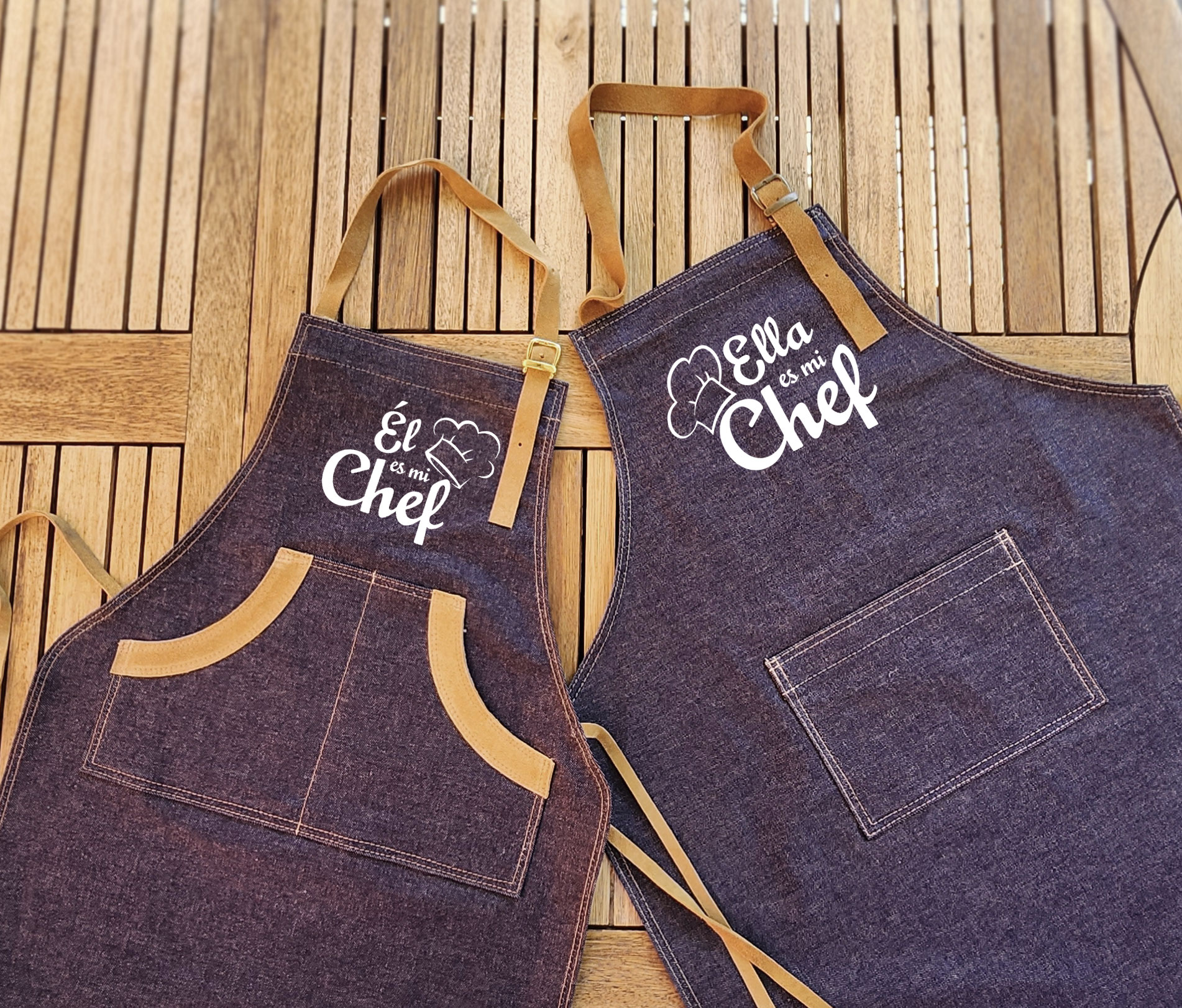 Pecheras de reno hombre y mujer, con hermosos estampado en vinilo “Ella/El es mi Chef”.
