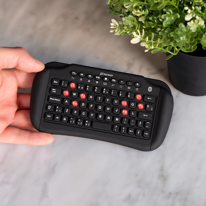 Teclado Inalámbrico Bluetooth completamente habilitado con letra y comandos secundarios. Conectividad Bluetooh con una distancia máxima de operación de hasta 10 mts. TouchPad en la parte posterior con un área de 6 x 4,5 cms.